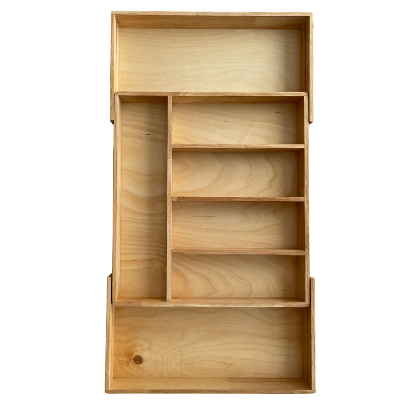 این جاقاشقی دارای هفت بخش تفکیکشده است که امکان مرتبسازی انواع قاشق، چنگال، کارد، ابزار سرو، کفگیر و سایر لوازم ریز آشپزی را فراهم میکند. قابلیت کشویی بودن و تنظیم اندازه باعث میشود بتوانید آن را مطابق ابعاد کشوی خود کوچک یا بزرگ کنید و از هر سانتیمتر فضا بهترین استفاده را ببرید.