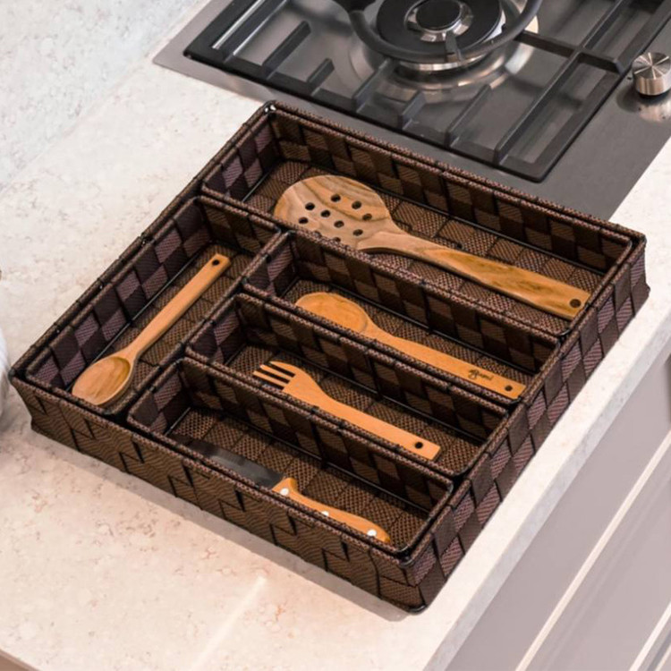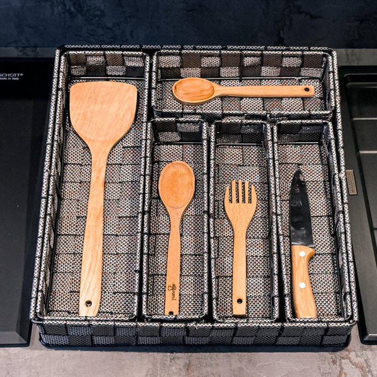 این محصول دارای تقسیم بندی هایی با اندازه های متنوع می باشد که در تناسب با اندازه وسایل مختلف آشپزی همچون ملاقه و کفگیر بوده و همینطور دارای اندازه های کوچکتر مناسب قاشق و چنگال می باشد. با تقسیم بندی مناسبی که برای قسمت های مختلف در نظر گرفته شده است شما می توانید انواع تجهیزات سرویس غذاخوری همچون قاشق و چنگال را در آن بچینید.